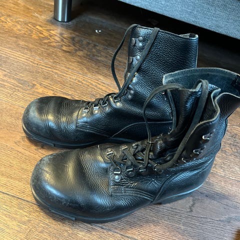 Selger et par militære vinterstøvler i størrelse 44. Disse er kraftige, slitesterke og bygget for røff bruk. egnet for vinter, arbeid, tur eller generelt tøffe forhold.