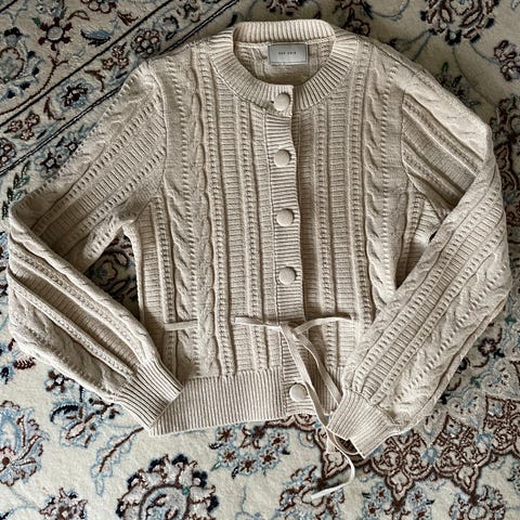 Beige med kvite sømmer