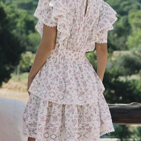House of CB Kjole til spesiell anledning i rosa farge, størrelse One size. Kjolen har et blomstermønster, puffede korte ermer, firkantet utringning og knyting i ryggen. Materialet er lett og egnet for spesielle anledninger.