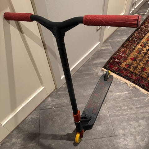 Greit brukt trikse sparkesykkel med et ekstra deck for de som vil bytte til et som veier mindre. En veldig god sparkesykkel for alle som vil være i park eller på gata. Kom gjerne med bud eller spørsmål😊