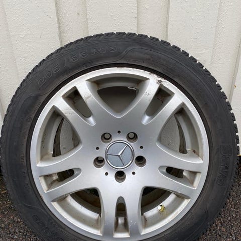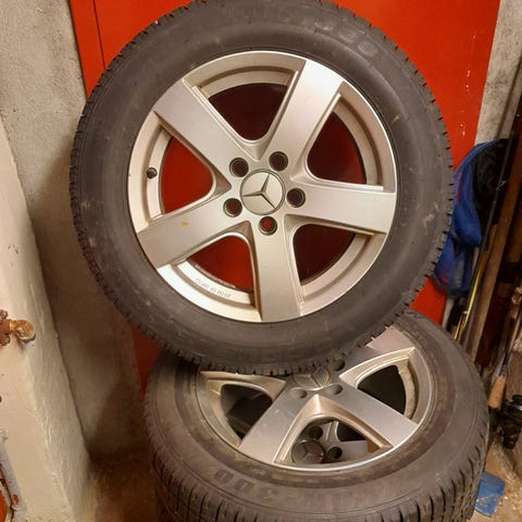 Mercedes-Benz komplette hjul med dekkstørrelse 205/60 R16 og Continental dekk. H XL-klassifisering som indikerer høy lastekapasitet. Passer for biler som krever denne spesifikasjonen. Hjulene har felger i original Mercedes-Benz-design.