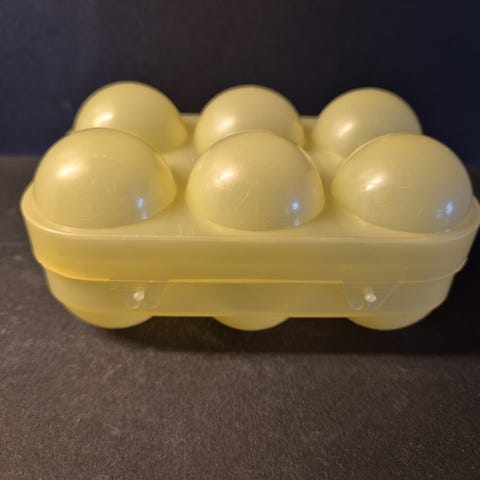 Turutstyr fra 1950 tallet.Solid egg holder i plast.Plass til 6 egg.Meget god stand uten tegn på bruk,som ny. Til å frakte med seg egg på tur. Sjelden å finne slike i dag.