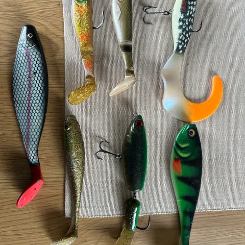Selger 17 stk beter til Gjedde fiske, pluss 100 meter ny braid . Se bilder for vekt, lenge og farger. Send gjerne melding om det er noe man lurer på!