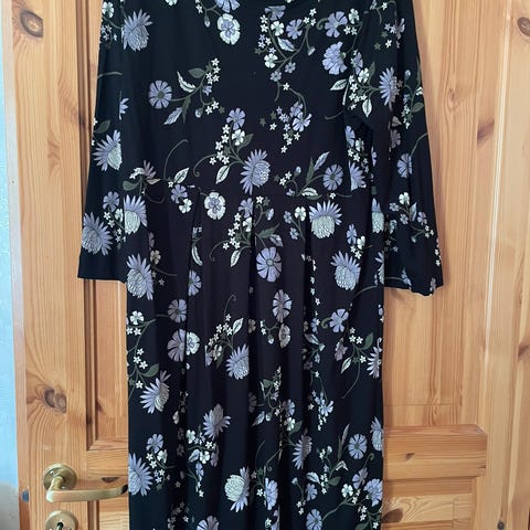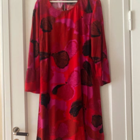 Selger en fint brukt Masai kjole i størrelse XL. Kjolen er laget av 96 % viskose og 4 % elastan, noe som gir stoffet elastisitet og komfort. Designet for kvinner, med kort erme og omslagsdetalj foran. En veldig behagelig kjole som passer både til hverdags og fest. Er mer en str XL enn XXL.