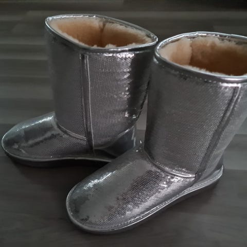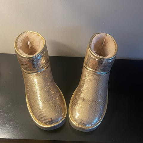 Gull støvler i størrelse 43 med glitrende overflate og foret innside. ( russeboots)