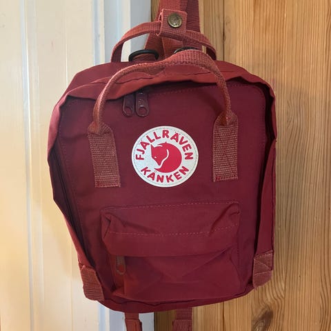 Kånken Mini er en mindre versjon av Kånken-ryggsekken, med lange skulderremmer som kan justeres for å passe til både barn og voksne. Liten frontlomme (med fungerende glidelås), løst sitteunderlag og reflekslogo.