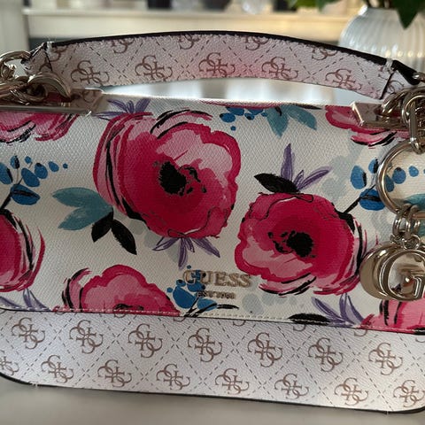 Mote tilbehør veske dame kvinne Guess totebag skulderveske Y2K logo beige slange faux reptil design accessories bag