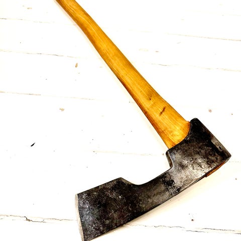 Lafteøks /lafteøksa er nylaget ved knutsensmia i Mjøndalen, etter makker og arbeidsmetode fra fra et nedarvet i denne smia er den ble etterlatt i 1896 og har vært i gang siden da, denne smiahar altid håndlaget økser og har et rykte som en av de beste. Denne billa har mål 6 X8 og en vekt på 1874g alt er håndlaget. Det er god balanse i villa. Det er med eggbeskytter i beverskinn.