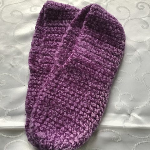 Sjalet/skjerfet er type kunststrikk. Fnugg lett, lys lilla og ca.80 x 90 cm.Har vært brukt maks 3 ganger. Det er vasket fint for hånd nylig. Er kjøpt i Norge.
