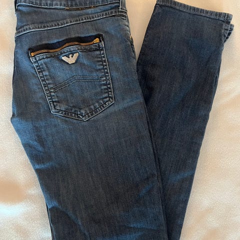 Selger en «Acne» studios genser. Blå med brune detaljer.