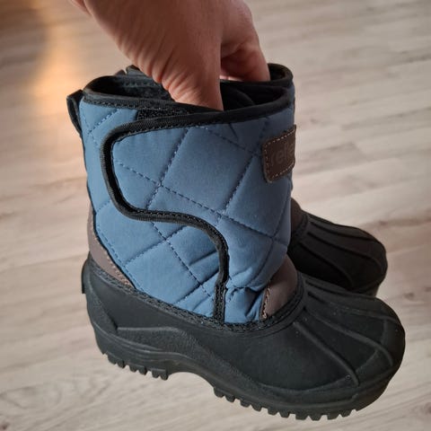 Blå vintersko fra Reflex i str. 25, brukt i en sesong. Hardt materiale nederst, som kan være fint i slaps. I tillegg er det borrelås som kan åpnes på begge sider, som gjør det lett for de små å få på skoene selv ✨