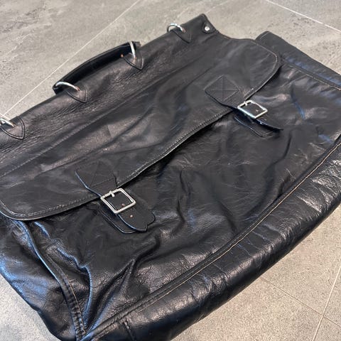 Francesco Biasia skinn reiseveske/weekendbag i svart. Vesken har flere lommer og 3 utvendige rom med glidelås, justerbar skulderrem og håndtak. En innvendig lomme med glidelås.