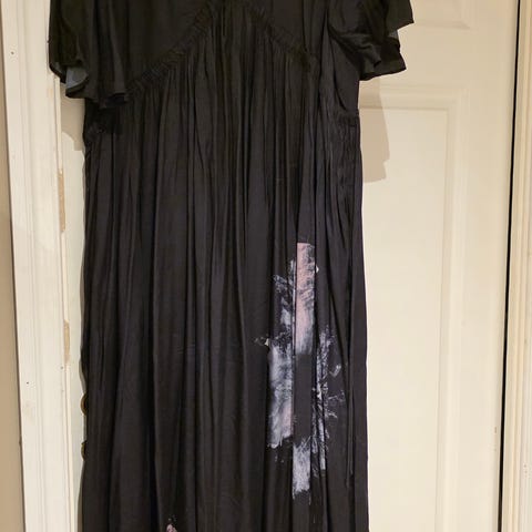 Killstar Summer cover-up i størrelse L, svart farge med mønster i lilla toner. Kjolen har lange ermer med volangdetaljer og knyting i midjen for justering av passform. Materialet er lett og egnet for sommersesongen. Elegant og feminin ✨️🌹🤘