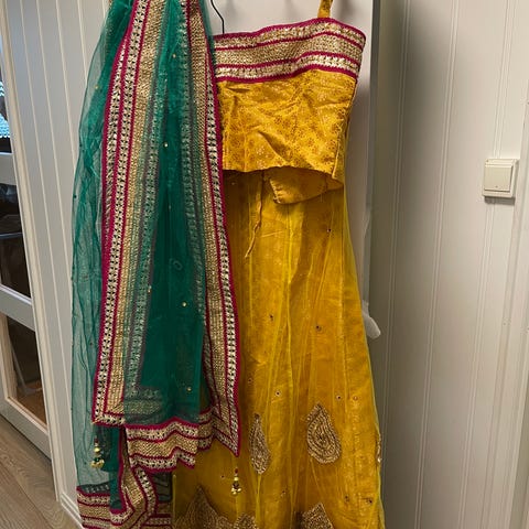 Selger min vakre indisk festkjole (lehenga) i tradisjonell stil, perfekt til bryllup, fest eller kulturelle anledninger. Settet består av: