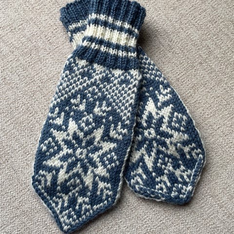 Lilla og blå ullgenser