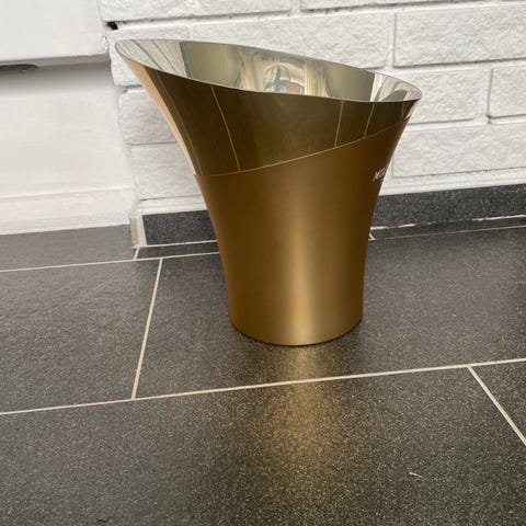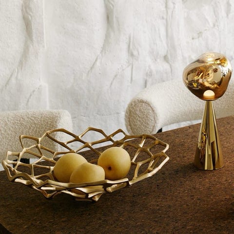 Tom Dixon dekorasjon ornament laget av gullfarget metall. For stearinglys og telys. Designet med en spiralformet struktur. Egnet som dekorativt element i hjem eller kontor.