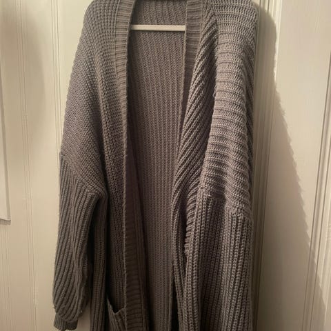 Lang cardigan som ikke er brukt, men lappen er tatt av. Grå farge, fra Cubus i str. XL-XXL.