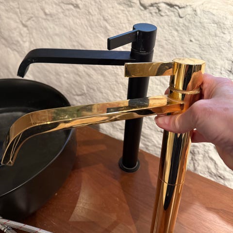 ”Den geometriske designen er gjennmført for hele baderommet. De elegante linjene stammer fra tenketanken til Phoenix.