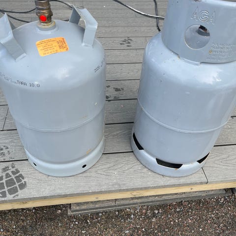 Gassflaske Tara 11,9 kg grå stål industrikobbling.Kan byttes i andre.