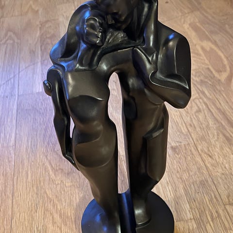 Austin Sculpture figurine som forestiller en dame med stor hatt og en hund ved siden av. Laget i bronsefarget materiale. Passer som dekorativ gjenstand.