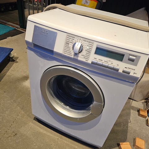 Samsung Frontmatet Vaskemaskin i hvit farge. Maskinen har en frontmatet design som gjør det enkelt å laste og losse klær. Egnet for husholdningsbruk.