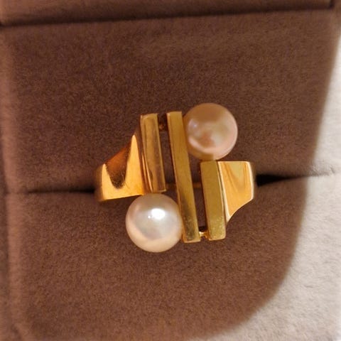 Lekker tredelt ring i 925 sølv og 14KT gullforgylt i både gult og rosé farget. Den i sølv har stener. Stemplet på innsiden, størrelse 55 ca. Lite brukt!