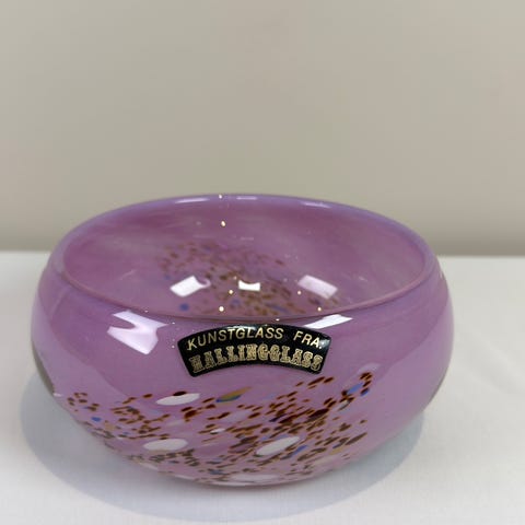 Mellemstore svensk tung glasskål på fod med smukkeste detalier.