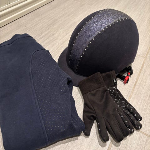 Ekstra vidde i leggen på støvlettene, str 39. Hjelmen er str 58-62. 1000,- for støvlettene og 200,- for hjelmen. Har også flere ridebukser i str XL. 2 bukser også i fuksia farge. 100,- pr stk