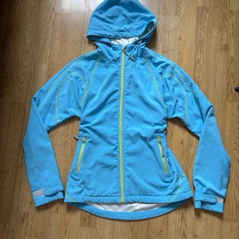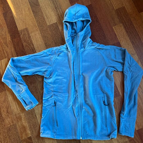 Blå og fin hettejakke . Kan brukes som treningsgenser / jakke .Nesten ikke brukt .