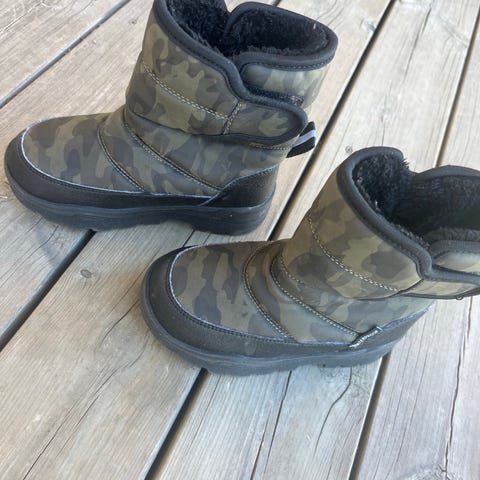 H&M unisex vinterstøvler i størrelse 28, grønne. Støvlene har glidelås på siden for enkel på- og avkledning. Yttersålen har godt grep med mønstret gummi. Materialet er vannavstøtende med isolerende fôr for varme og komfort i kalde forhold.