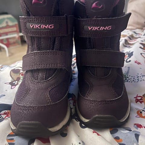 Varme og stabile Viking gore-tex vintersko. Robuste og solide med fine detaljer. Godt brukt av ett barn i et røykfritt og dyrefritt, men mye bruk igjen. Se bilder.