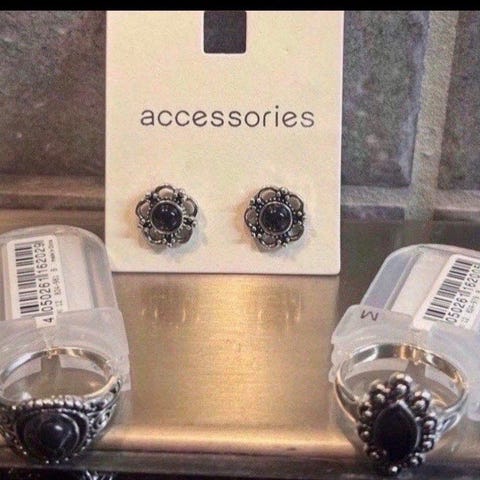 Ubrukte ringer og ørepynt. Ringer med perler er regulerbare. Kr 25 pr stk eller to for kr 40