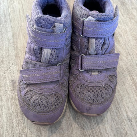 Viking barne sko for jenter i størrelse 32. Skoene er lilla og har borrelås for enkel justering. Materialet er slitesterkt og egnet for aktiv bruk.