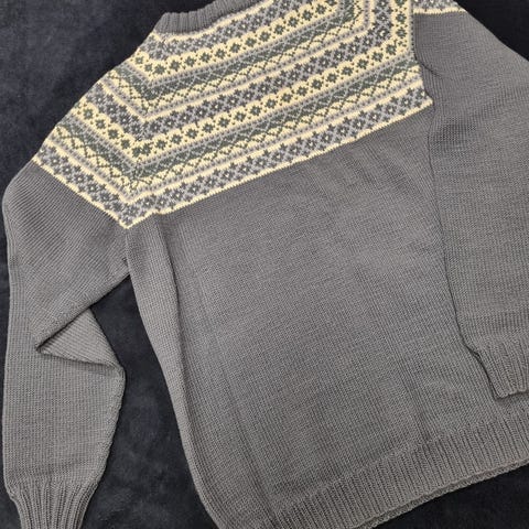 Veldig fin og nystrikket ullgenser med rypemønster. Strikket i merinoull.