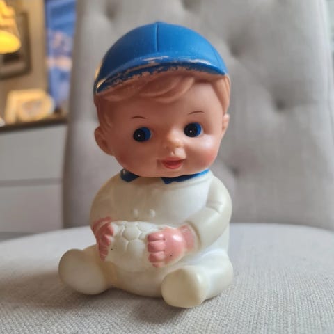 Vintage figur av mann i keramikk med avtagbart hode(til å ha drikke oppi