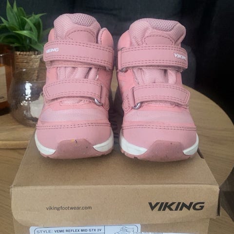 Viking GORE-TEX barnesko i størrelse 23, designet for jenter. Skoene er laget med vanntett GORE-TEX-materiale, som gir god beskyttelse mot fuktighet. De har en praktisk borrelåslukking for enkel på- og avkledning. Perfekt for aktive barn som trenger komfortable og robuste sko til daglig bruk.