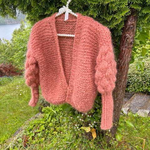 Vaiana cardigan str XS/S, strikket i Gjestal garn Vera (20% ull, 80% akryl) selges da den dessverre ikke blir brukt. Bare brukt et par ganger, fremstår som ny. Tjukk og god jakke med nydelig fargespill!