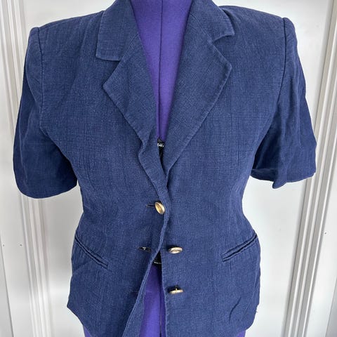 Jakken er i lin og bomull, veldig behagelig. Str 40.