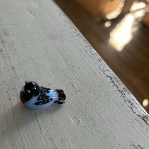 Keramisk dekorasjon bestående av en frosk. Frosken har grønn og oransje farge,passer som dekorasjon eller samlerobjekt.