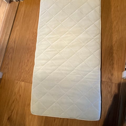 Veldig pent brukt madrass til barneseng selges billig 150, ny pris 799, trekket er nylig vasket. Har to stk,
