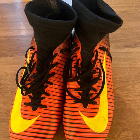 Nike fotballsokker i fargene rød og blå, størrelse large. Sokker er designet for sportsbruk med forsterkede partier for bedre komfort og holdbarhet. Materialet er pustende og elastisk for god passform.