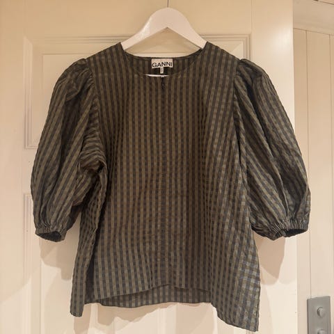 Saint Tropez - topp i farge grå, str. M. Volangdetaljer.