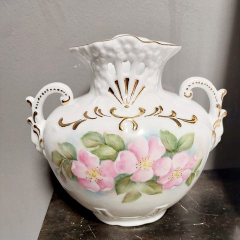 Vase håndmalt. Blå med gull