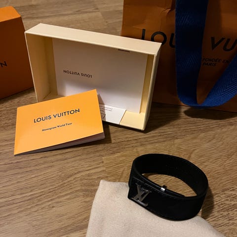 Svart Louis Vuitton armbånd herre str 19. Har kvittering om det ønskes.