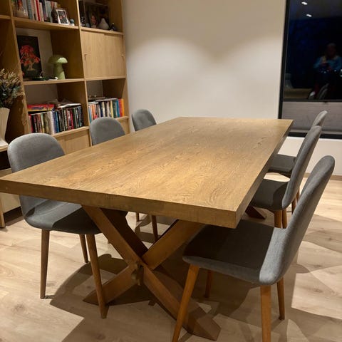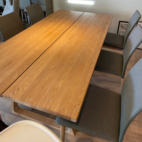 Spisebord fra Skovby kjøpt nytt i 2020. Modell på spisebordet er SM105.