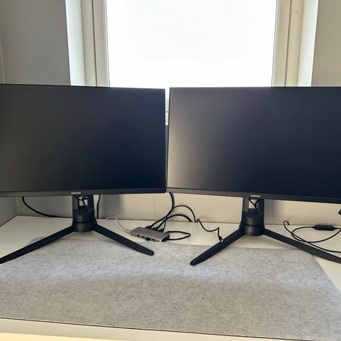 Selger en LG UltraFine 24MD4KL-B, en 24” 4K-skjerm med skarpt bilde og flott fargegjengivelse. Den passer godt til både jobb, studier og kreativt arbeid, og er kjent for å være spesielt tilpasset Mac.