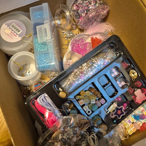 - 1 boks med perler (ca 3/4 full)