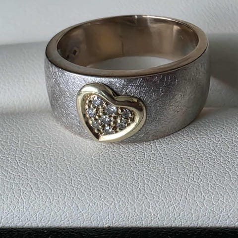 Elegant hjertering i 2-farget 14K gull med diamant