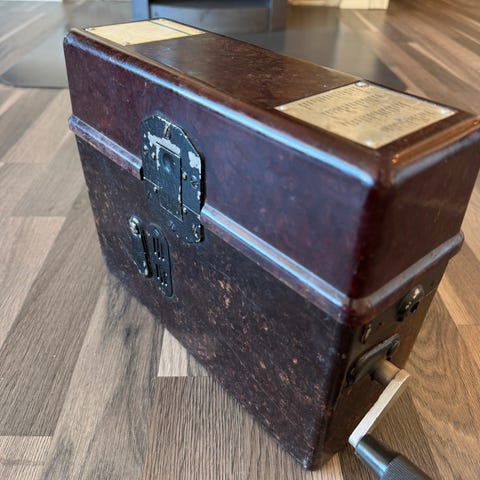 Spilledåsen virker som den skal. Det er brukket en tann. Se bilde. 16 plater medfølger.
