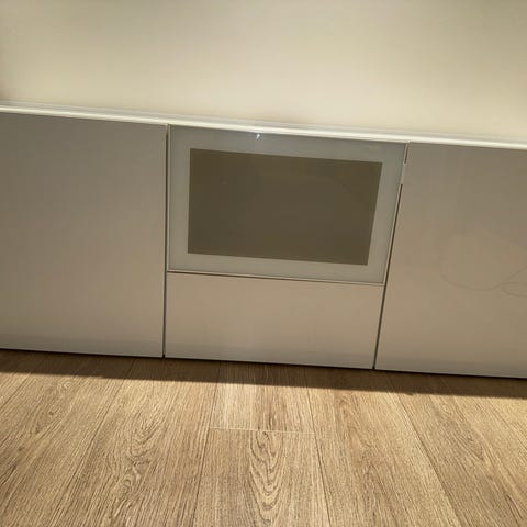 TV benk er opprinnelig eikefinert, men lakkert av profesjonelt lakkverksted.